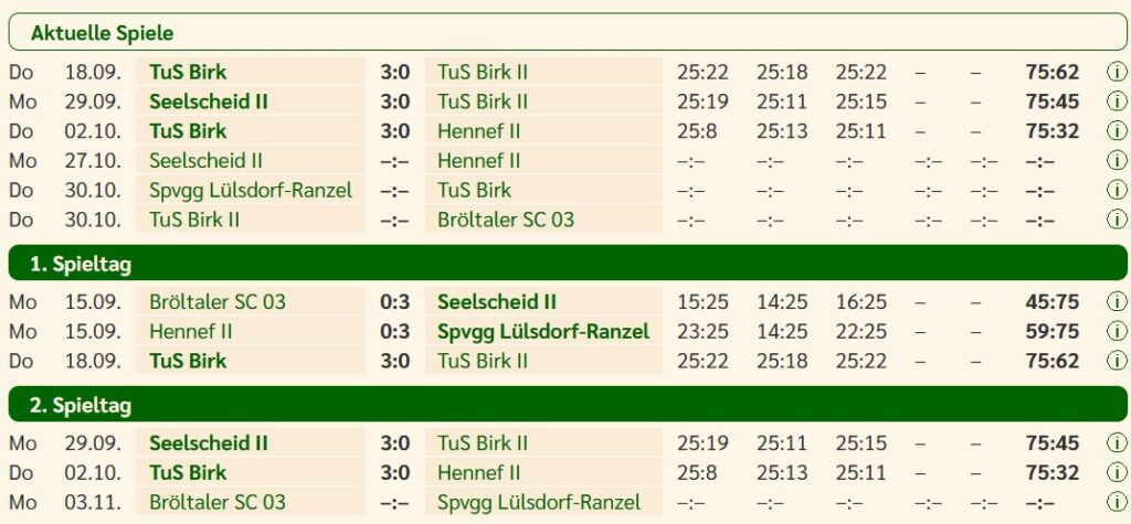 Spielberichte Das war die Saison 2018/2019 >>>Das war die Saison 2019/2020 >>>Das war die Saison 2021/2022 >>>Das war die Saison 2022/2023>>> Das war die Saison 2023/2024>>>Das war die Saison 2024/2025>>> BFS Herren - Bezirksklasse 2 BFS Mixed - Kreisliga Nord